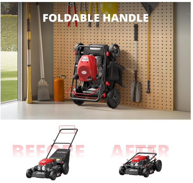 6, Foldable Handle Eases Storage - The handle folds down for more compact storage, which is appreciated by users with limited garage space.