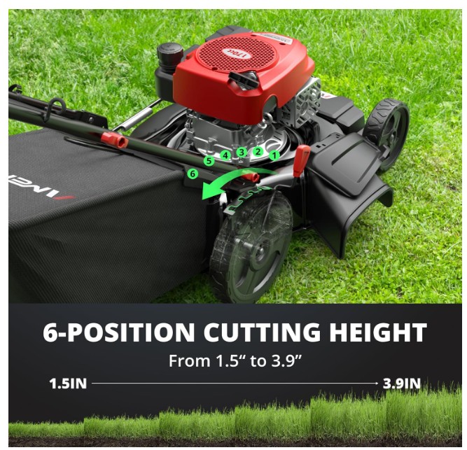One of the main selling points here is the self-propelled drive, which can reduce fatigue on sloped or larger yards. Combined with the 21-inch steel deck, it helps cover ground faster with fewer passes. The 6-level height adjustment, ranging from roughly 1.5 to 3.9 inches, should suit most common lawn types in the U.S., from shorter cuts to slightly taller, healthier grass.