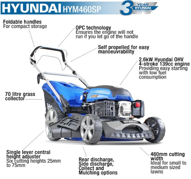 #3 Hyundai 46cm Self-Propelled Petrol Lawnmower