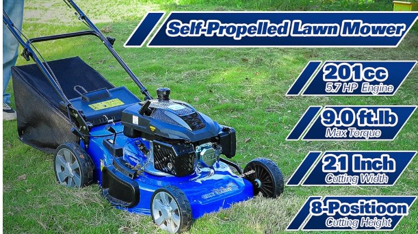 201cc 4-Cycle OHV Engine - This mower is powered by a 201cc 4-stroke engine delivering around 9.0 ft·lb of torque. For a standard suburban lawn, that level of output should comfortably handle regular grass and even moderately thick growth. Several users report that it starts easily, often on the first pull, thanks to the no-choke, no-primer design. That feature alone may reduce frustration for those who dislike fiddling with cold-start procedures.
