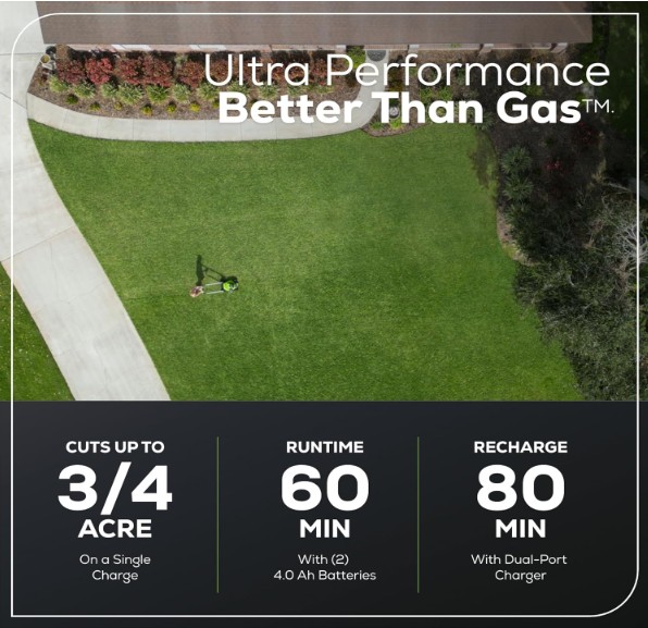 - “It cuts every bit as good as my past gas mowers but now I don’t have to change oil and fill up gas cans anymore.”
