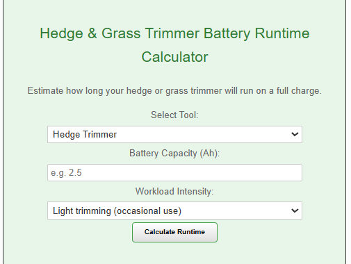 Hedge & Grass Trimmer Battery Runtime Calculator