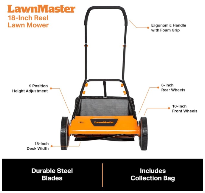 The LawnMaster 18 Inch Push Reel Lawn Mower, model LMRM1801, is a manual reel mower aimed at homeowners who want a simple, low-maintenance way to keep a small lawn tidy. Priced roughly between $100 and $120 in the US, it sits in that affordable middle ground where expectations tend to be practical rather than premium.