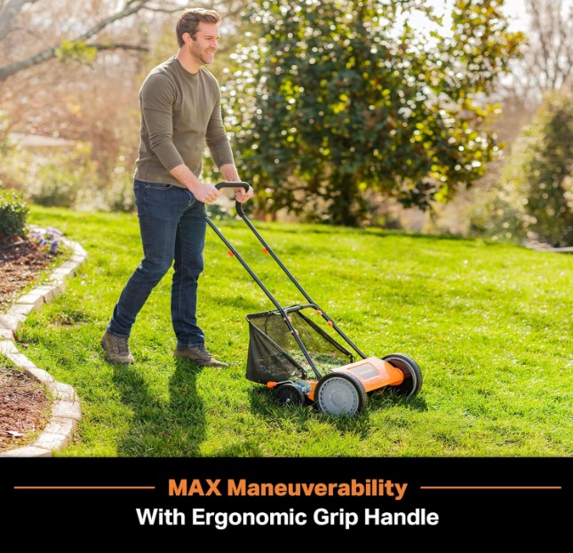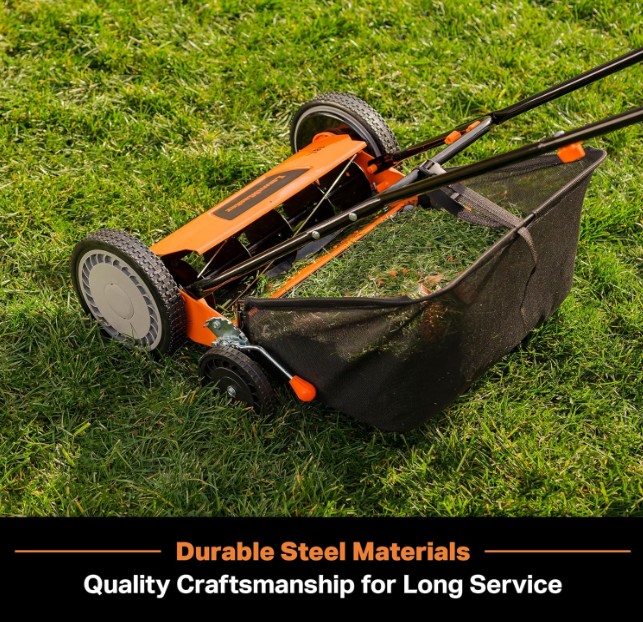 In the right environment, this mower shines. Its 5-blade reel produces a precise, scissor-like cut, which many users have noted improves the look and health of grass over time. Assembly is quick and intuitive, and the lightweight, compact design makes storage easy. It’s quiet, eco-friendly, and requires no fuel or batteries, which is a big advantage if you want a low-maintenance, budget-friendly option. For small lawns with regular mowing schedules, it can feel almost effortless, even a bit fun, and some reviewers described it as a “nice workout.”
