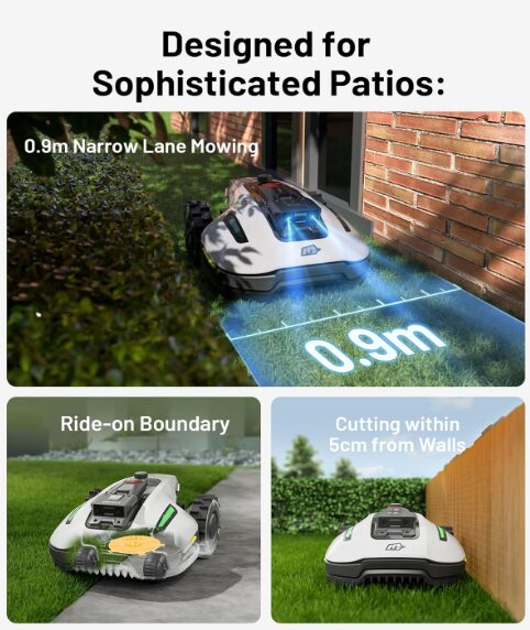 The mower’s safety features are seriously impressive. Thanks to its 3D AI Vision and UltraSense technology, it can detect over 120 obstacles, from toys and hoses to pets lurking around. It dodges these with ease, ensuring a smooth mowing experience without the stress.