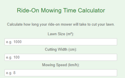 Ride-On Mowing Time Calculator Tool