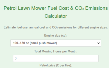 • Petrol Lawn Mower Fuel Cost & CO₂ Emissions Calculator