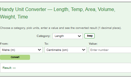 • Compact Unit Converter – Length, Temperature, Area, Volume, Weight & Time