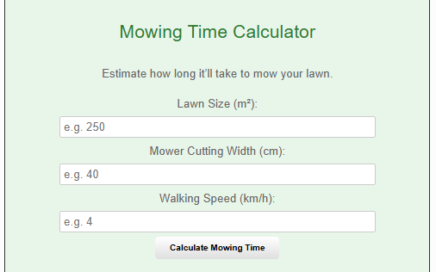 Calculate your mowing time in minutes from lawn area and mower width. Know your next mow’s duration in a blink and organize your day better […]